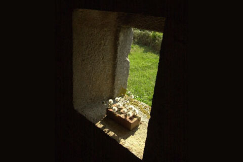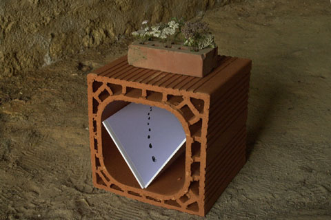 Ces briques étaient disposées en des points singuliers : sur un billot de bois, sur un boisseau de cheminée, sur un bloc de granite, dans l'embrasure d'une fenêtre... Ces plantes n'ont pas été renouvelées pendant l'exposition. Certaines ont séché en conservant leurs couleurs, d'autres se sont fanées, d'autres enfin ont fructifié et le vent a dispersé leurs akènes.