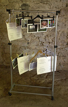 L'exposition s'est tenue dans l'appenti d'une vieille grange. La grange elle même abritait l'installation "Un week-end à la campagne" (Agnès Moyencourt basson/voix/supports, Nicolas Chedmail cor/tuyaux et Laurent Fléchier clarinette/supports/surfaces). A l'occasion du festival, divers concerts se sont tenus sur le même site : "Peter Hollinger solo" (batterie), "Le retour du duo de chats aux griffes acérées" (David Chiesa/contrebasse et Mathieu Werchowski/violon) ainsi que des performances dans l'installation "Un week-end à la campagne". |