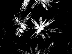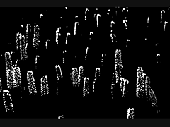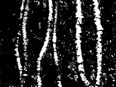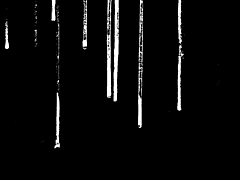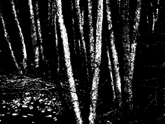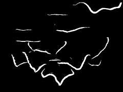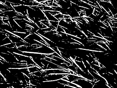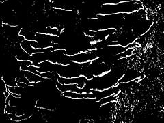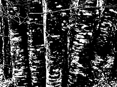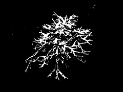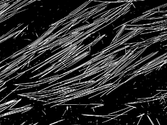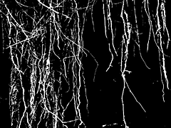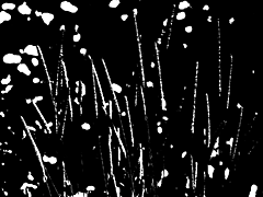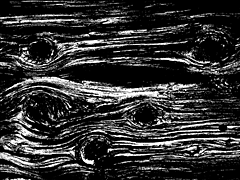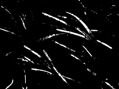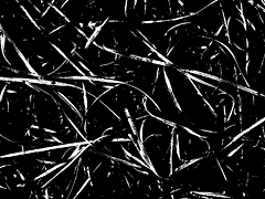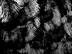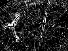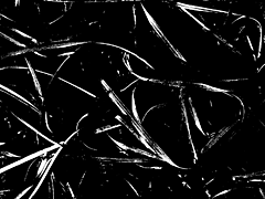 Extractions 0L'idée sous-jacente aux extractions est de rechercher (au delà du figuratif comme au delà du hasard) les couleurs et les formes qui sont les éléments de base de la géométrie de la nature. Les images de "Extractions 0" sont tirées d'archives de photographies numériques accumulées lors de la réalisation de cédéroms de sciences naturelles. Un premier travail a consisté à visionner ces archives en recherchant des photos non narratives. Quelques dizaines de photos de "textures" ont ainsi été extraites d'un corpus de plusieurs dizaines de milliers de photos de plantes, insectes, poissons... Ces photos avaient été prises à l'époque soit avec l'idée d'en faire des fonds d'écran, soit parce que les textures proposées par la nature me semblaient esthétiques. Un peu de théorieLa géométrie humaine connait des catégories bien simples : point, ligne, surfaces limitées par des droites, surfaces limitées par des courbes régulières... Dans la nature, rien n'est si simple. Une étoile est ce qui se rapproche le plus d'un point, mais il y a des étoiles plus ou moins grosses, plus ou moins vibrantes, plus ou moins lumineuses, avec différentes nuances de couleur. Des tiges de graminées ou des troncs d'arbres peuvent faire penser à des droites paralèlles ; mais aucune tige n'est parfaitement droite, et deux tiges ne sont jamais parfaitement paralèlles... La physique contemporaine nous explique d'ailleurs que même un rayon de lumière ne suit pas ce parfait chemin en ligne droite que l'on pourrait croire idéal. La mécanique quantique explique comment on ne connait jamais avec une complète précision la position d'un photon (principe d'incertitude d'Eisenberg). La théorie de la relativité explique comment le trajet des rayons lumineux est incurvé par les hétérogénéités du champs de gravité. Les lignes droites des rayons lumineux sont donc floues et ondulent ! Une "extraction" consiste donc à trouver dans la nature une forme simple, ultime, irréductible, puis à laisser cette forme nous interroger ou nous émouvoir. Un peu de techniqueLes photos ont été retravaillées dans Photoshop en utilisant l'outil luminosité/contraste : le contraste est poussé à +100% et la luminosité est ajustée pour mettre en évidence les lignes les plus intéressantes. Dans certains cas les "pétouilles" sont effacées à la gomme, dans d'autres elles sont conservées. |