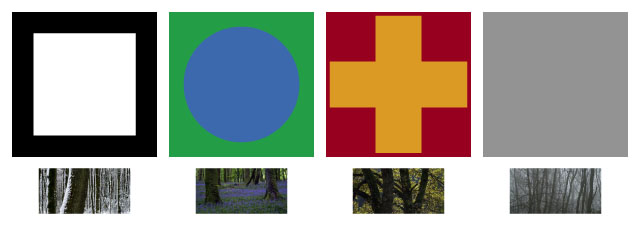 L'idée est d'associer en toute subjectivité une forme et deux couleurs à chaque mois en forêt.