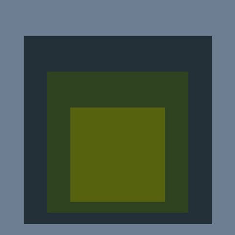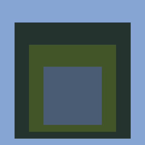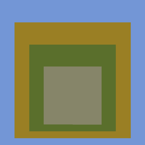 Alors que j'étais encore professeur associé à l'université de Paris 1, j'avais donné devant mes collègues une conférence sur l'art et l'informatique. J'avais alors fait fabriquer par un ordinateur des dizaines de "carrés d'Albers" en suivant diverses lois mathématiques de mélange des couleurs. Puis j'avais mélangé ces carrés "mathématiques" avec des reproductions d'oeuvres réelles d'Albers. Mes collègues avaient pu sans hésitation et sans aucune erreur départager les "vrais" carrés des "faux". Les "vrais" carrés avaient quelquechose de magique, de profond, de fascinant. Les "faux" étaient plats et sans vibration. J'ai voulu tenter l'expérience de refabriquer des carrés d'Albers en "extrayant" les couleurs de photos de paysages. La pipette de photoshop, quelques tatonnements, et le tour est vite joué. J'ai été très surpris (et très heureux) de voir que les carrés ainsi extraits étaient pour la plupart très intéressants et même souvent assez beaux. Par quelle magie ? La seule réponse que je peux trouver pour le moment est que les différentes couleurs d'un même carré sont toutes des réflexions de la même lumière... Cliquez sur les carrés colorés pour faire apparaître les paysages dont ils sont extraits !