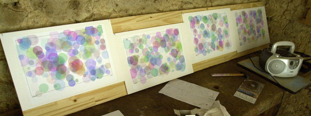 Extractions : art et hasardL'art abstrait géométrique -alias art concret- a souvent fait appel au hasard pour rythmer ses compositions. Ayant beaucoup travaillé sur ce sujet dans les années 80 avec une recherche intitulée "Murales" et me détournant aujourd'hui de cette voie, c'était un petit clin d'oeil de ma part de commencer cette exposition par une mise au goût du jour (en Flash et en couleur) de ce que je pouvais faire il y a près de 20 ans (en Basic ou en Pascal... et en noir et blanc). |